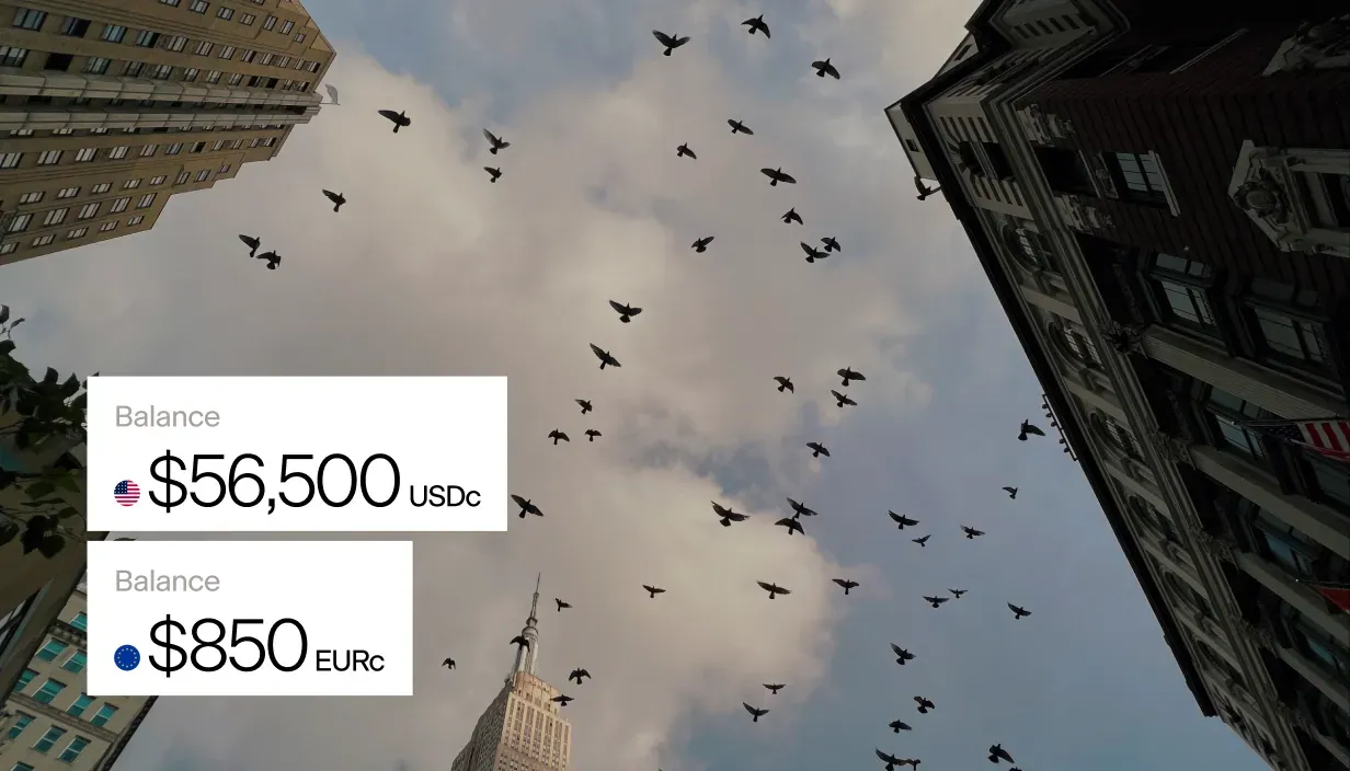 Store your company’s funds in globally trusted digital dollars and euros.